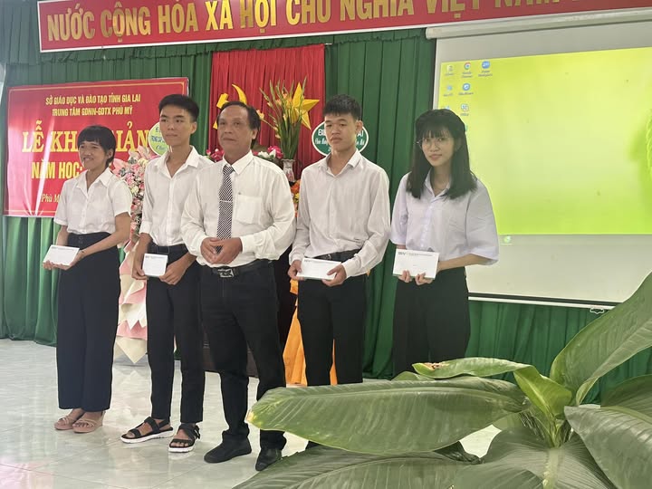 Thầy Nguyễn Bá Hường thay mặt BGĐ Trung tâm GDNN-GDTX Phù Mỹ trao 04 xuất học bỗng của BIDV cho học viên vượt khó nhân dịp khai giảng năm học 2025-2026. Chúc các em vượt qua khó khăn hoàn thành ước mơ của mình.